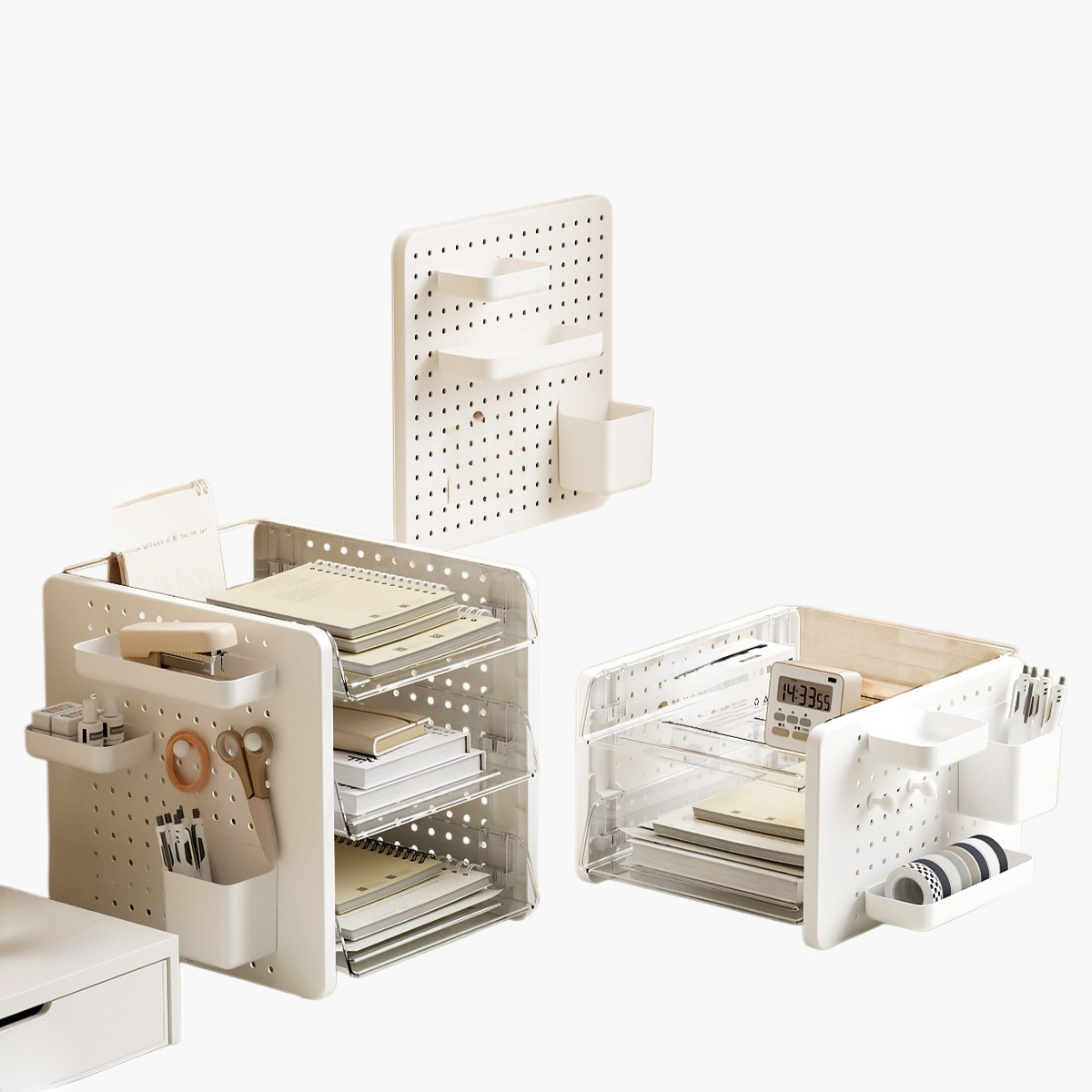 데스크탑 천공보드 파일 보관 랙은 공간 효율적인 파일 정리, 견고한 내구성, 쉬운 설치로 사무실·가정용에 적합합니다.